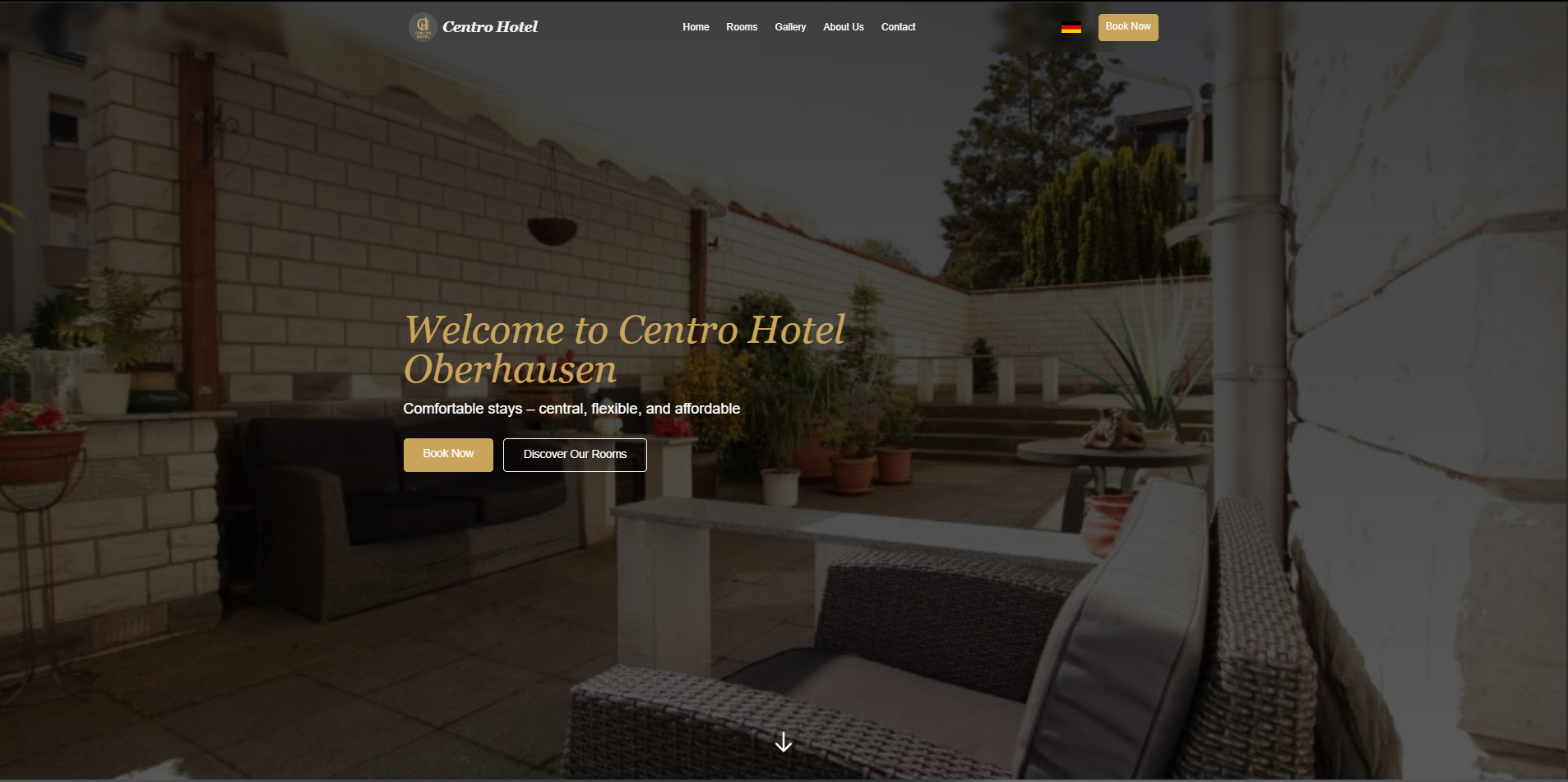 Moderne Hotel-Buchungswebsite mit Zimmerverwaltung und Online-Reservierungen